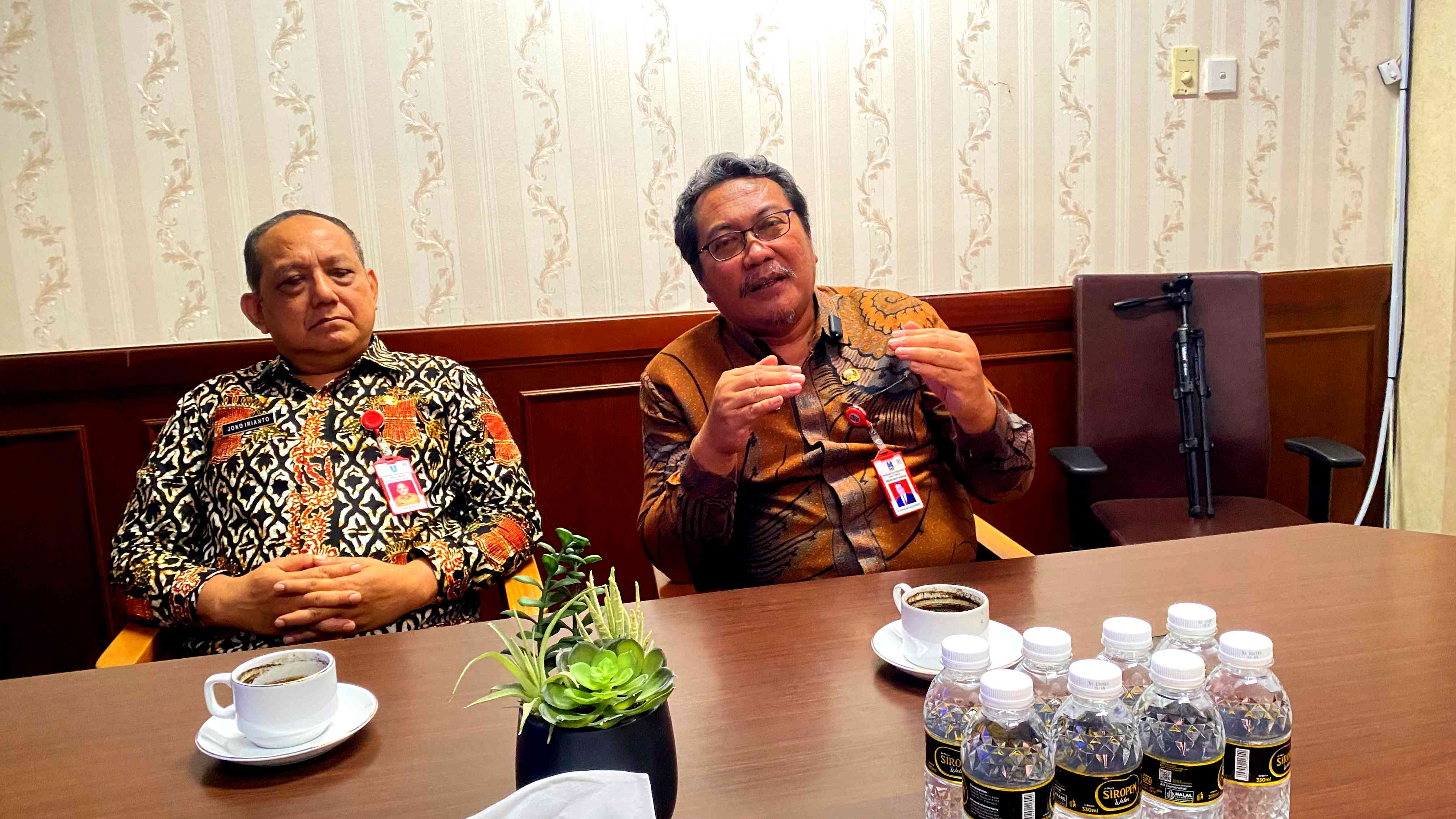 Kepala Biro Administrasi Pembangunan Setdaprov Jatim, R. Henggar Sulistiarto bersama Asisten Perekonomian dan Pembangunan Setdaprov Jatim, Joko Irianto.