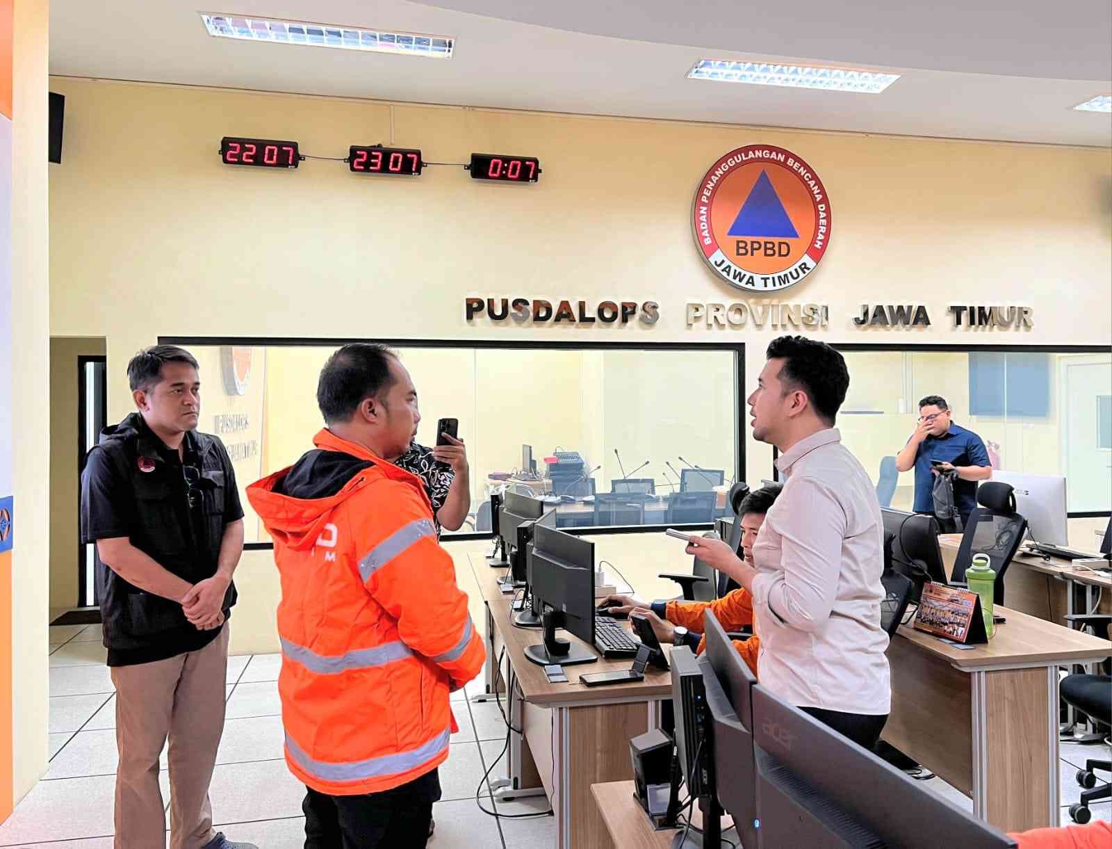 Setibanya di Pusdalops, Wagub Emil menyaksikan bagaimana bencana tidak pernah bergerak sendirian. Pada layar-layar raksasa, aliran data menunjukkan banjir merambah Gresik, Pasuruan, Jombang, hingga bagian-bagian Kota Surabaya. Setiap titik merah pada peta bukan sekadar indikator—melainkan rumah, jalan, dan manusia.