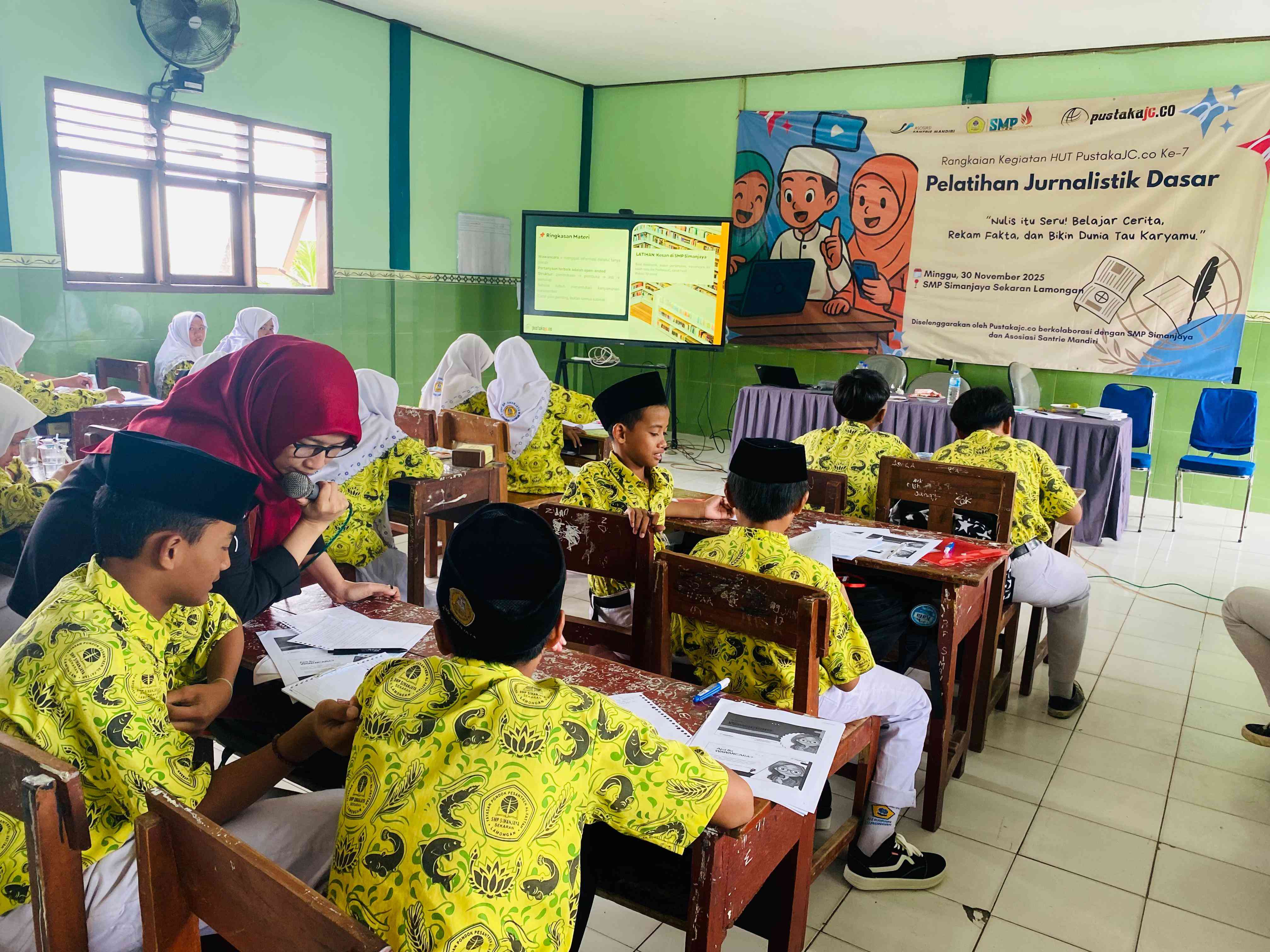“Kami sangat berterima kasih kepada PustakaJC.co atas kolaborasi dan ilmu yang diberikan. Anak-anak kami hari ini belajar langsung dari ahlinya. Maka saya berpesan, ikuti kegiatan ini dengan sungguh-sungguh. Ambil setiap kesempatan untuk belajar, karena keterampilan menulis akan sangat berguna bagi masa depan kalian,” tuturnya.